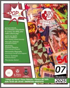 Il 7 dicembre 2025, All’interno dell’evento “Pop It in Christmas”, curato dalla Taverna dei Giochi, l’Associazione Il Pensiero Storico dalle ore 10:00 alle ore 13:00 terrà un seminario di approfondimento dedicato al dialogo culturale tra Oriente e Occidente, dal titolo “Tra Oriente e Occidente: la nuova ‘via della seta’ nella cultura pop”. L’incontro intende esplorare […]